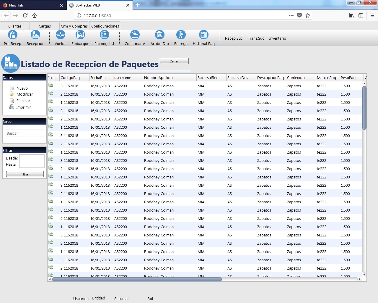 Hemos incluido un modulo de CRM, de tal manera que el departamento de atencion al cliente pueda optimizar sus tareas reduciendo el tiempo de busqueda de documentos o paquetes relacionados a un cliente, fin de atender en forma mas agil y rapida las consultas de los mismos. el modulo de CRM incluye :