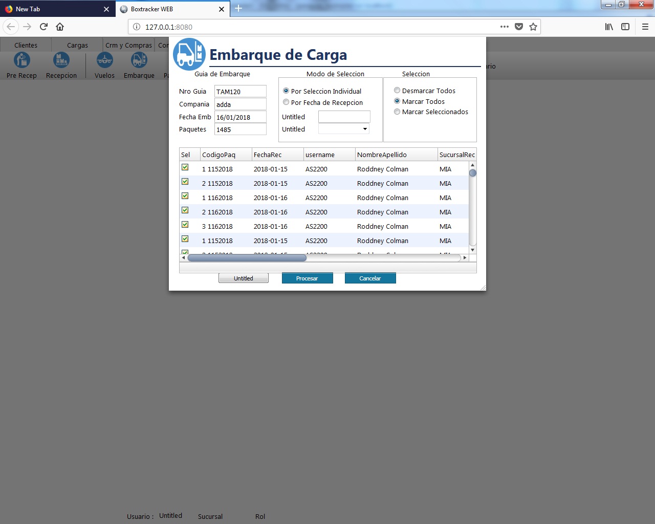 Se ha agregado un modulo de compras, para aquellos clientes que soliciten la compra directa de algun articulo, sin que tengan necesidad de una casilla, este modulo no solo permite registrar las solicitudes de compra, sino tambien acompañar todo el proceso hasta la entrega del articulo al cliente final. incluyen modulos de :